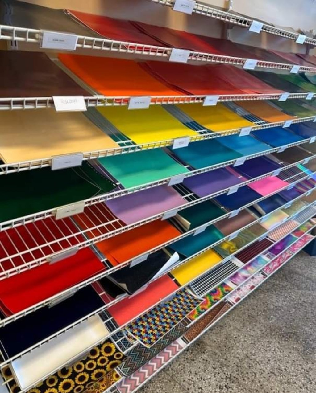 We are known for our selection of vinyl and sewing supplies, We have a wide variety of vinyl in all sorts of colors and textures. We also have craft items for your DIY projects and unique finds for those that are browsing for ideas.